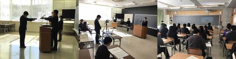 3月17日(金),普通科1,2年生を対象として,見事,志望校の合格をつかみ取った3年生(卒業生)を招き,合格者体験講話が開かれました。受験方法(学校推薦,総合型選抜,一般選抜)や大学,学部学科など,全て異なる6名の先輩方が話す,実体験に基づいた身近なアドバイスは,どんな進路講話よりも身に染みわたります。「勉強の仕方」「いつ志望校を決めたのか」「部活動と勉強の両立」「受験におけるメンタルの保ち方」など,在校生の多くの疑問に丁寧に答えてくれ,熱心にメモを取る後輩たちの姿が見られました。先輩から後輩へ受け継がれていくものは,このように形に表すことができないものも数多くあります。