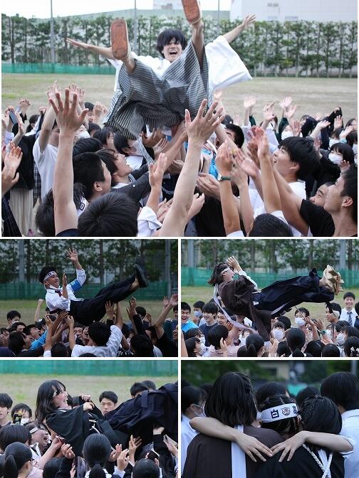 放課後の遅い時間にもかかわらず,多くの3年生が待ち受けて,応援団員,生徒会長・副会長をねぎらい,そして胴上げしていきました。