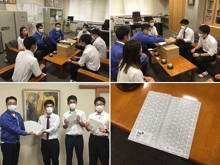 白石市に工場があり、SDGs目標への貢献・持続可能な循環型イノベーションを目指している企業であるため,課題研究の一環として,生徒が研究訪問したという経緯があります。校長、生徒会長、課題研究でお世話になった生徒たちが、マスクケースを受け取り、生徒会長が「環境に優しい新素材を開発している会社が、地元にあることを嬉しく思います。今後、御社と学校との関係がより深まり、白石高校が社会に貢献できるようになるよう、さらに研究に取り組んでいきたいです。」とお礼の言葉を述べました。