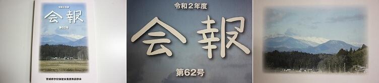 令和2年度,宮城県学校保健会養護教諭部会の会報に,題字「会報」は書道部3年のS.Iさん,表紙写真は「春へ歩む蔵王連峰」と称して写真部3年のY.Iくんの作品が採用されました。素朴で優しく,癒やされる文字と写真の提供で癒されますね。