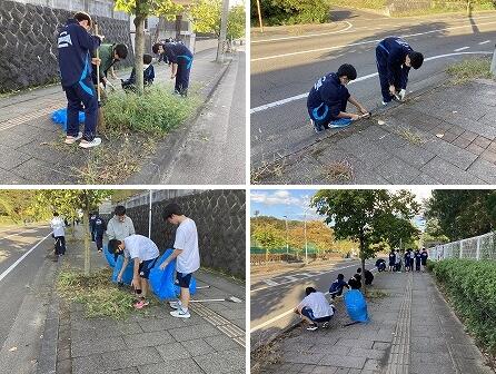 生徒はジャージに着替え、軍手を着用し、落ち葉拾いやゴミ拾い、除草活動を熱心に行い、終了時には各クラスともたくさんのゴミ袋が集められていました。この活動を通して、ボランティア活動や地域貢献に対する意識が高まったのではないでしょうか。