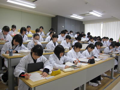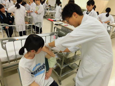 | 基礎看護技術 | 2年生では診療における看護に関する基礎的知識と技術の習得が目標です。診察・検査をはじめ、無菌法や院内感染の予防、与薬などについて学習します。患者の生命に直接関わる実技展開が多くなり、手技も難しくなります。 | ||