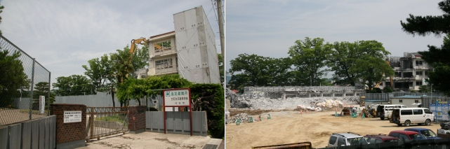 解体撤去作業が進む白石女子高校の校舎(2010年6月26日撮影)